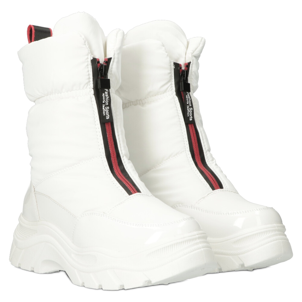 White snow boots Filippo DBT4236 is a combination of fashionable, sporty design and functionality for cold days. Made of high quality synthetic materials and fabric, with a warming fur lining, they provide heat and comfort even at low temperatures. The varnished surface in elegant white and a higher, 5 cm platform give the shoes a modern character, and the lock makes it easier to put on quickly.
