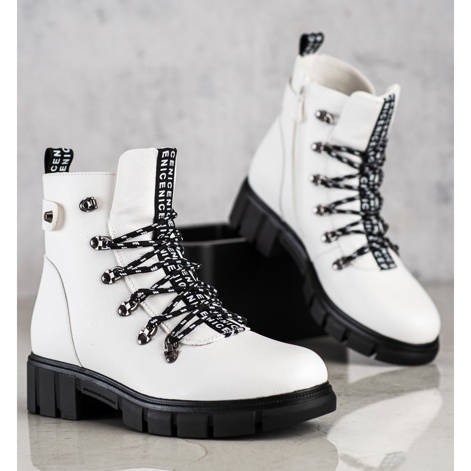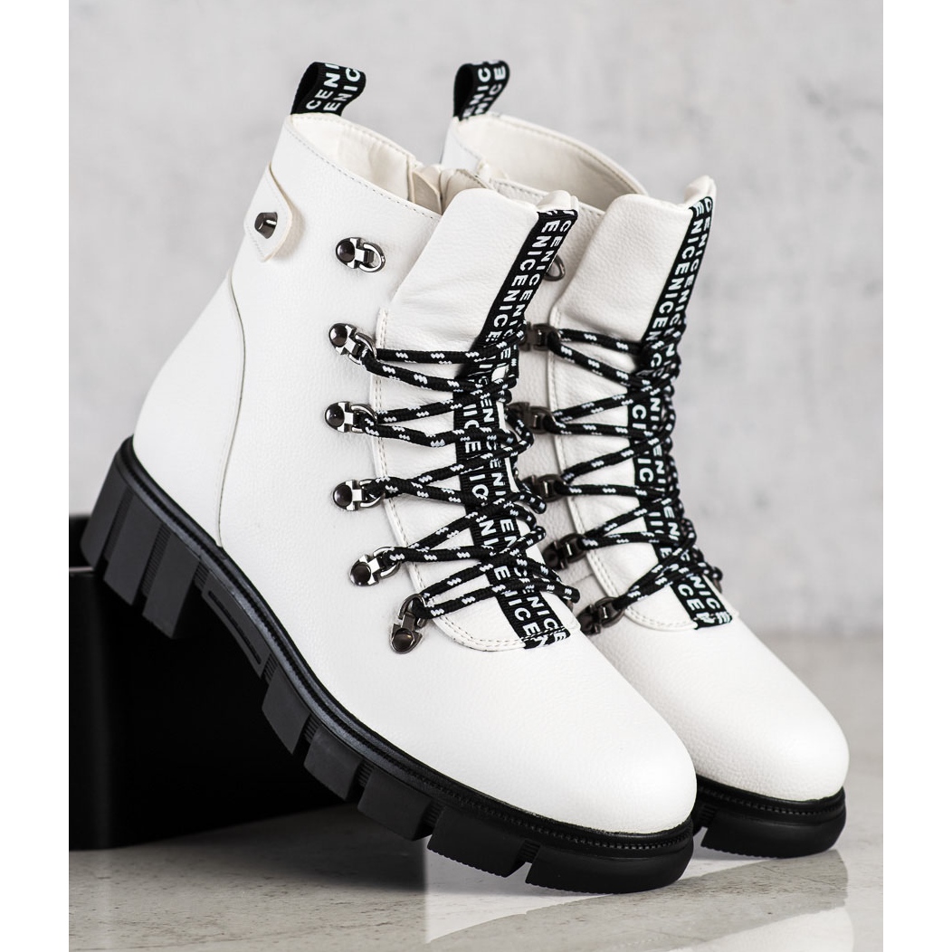 We present white platform work boots from the renowned Vinceza brand, which will certainly become an inseparable element of your autumn-winter wardrobe. Thanks to their casual style, these boots fit both everyday and slightly more elegant styles.