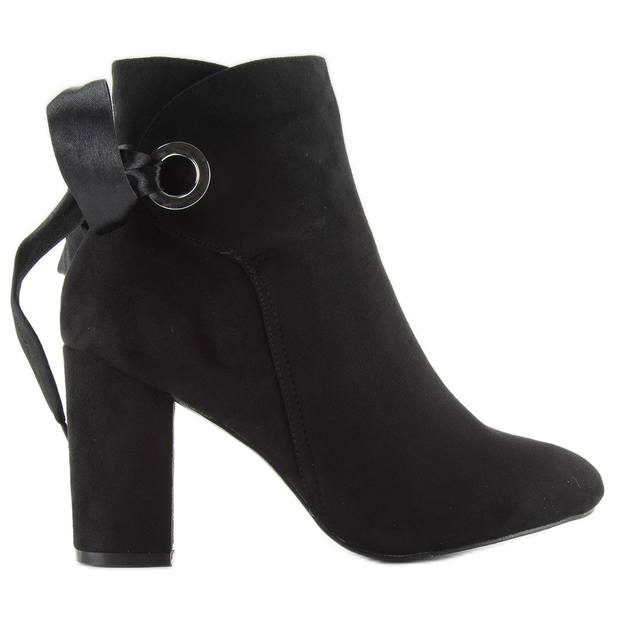 Ankle boots wide heel with ribbon la01p Black are the perfect choice for women who want to combine comfort with elegance. These beautiful black ankle boots stand out on a stable 9 cm heel, which ensures excellent balance and comfort when worn. Made of high-quality ecological suede, they add class to any styling.
