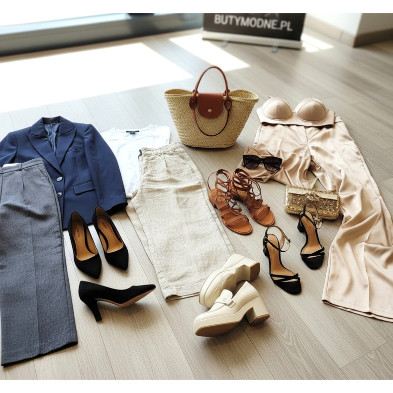 For a weekend getaway: light or beige linen ankle-length wide-legs, a white T-shirt and gladiator sandals or loafers with a thicker sole. The set is completed with a straw handbag and dark glasses - total summer vibes without exaggeration. For an evening out: champagne or gold satin wide trousers, fitted corset and high-heeled sandals with an ankle strap. Pure elegance, ready for a special occasion. Browse the offers on KeeShoes and put together the perfect outfit with wide legs!
