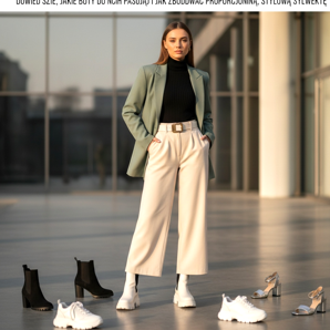 Not every shoe will look good with wide-leg pants. Ballet flats with a flat sole and long wide legs are a combination that can optically shorten the silhouette - unless the trousers are properly shortened to the ankle. The same thing happens with low sneakers, which get lost under long trouser legs, disturbing the whole effect.