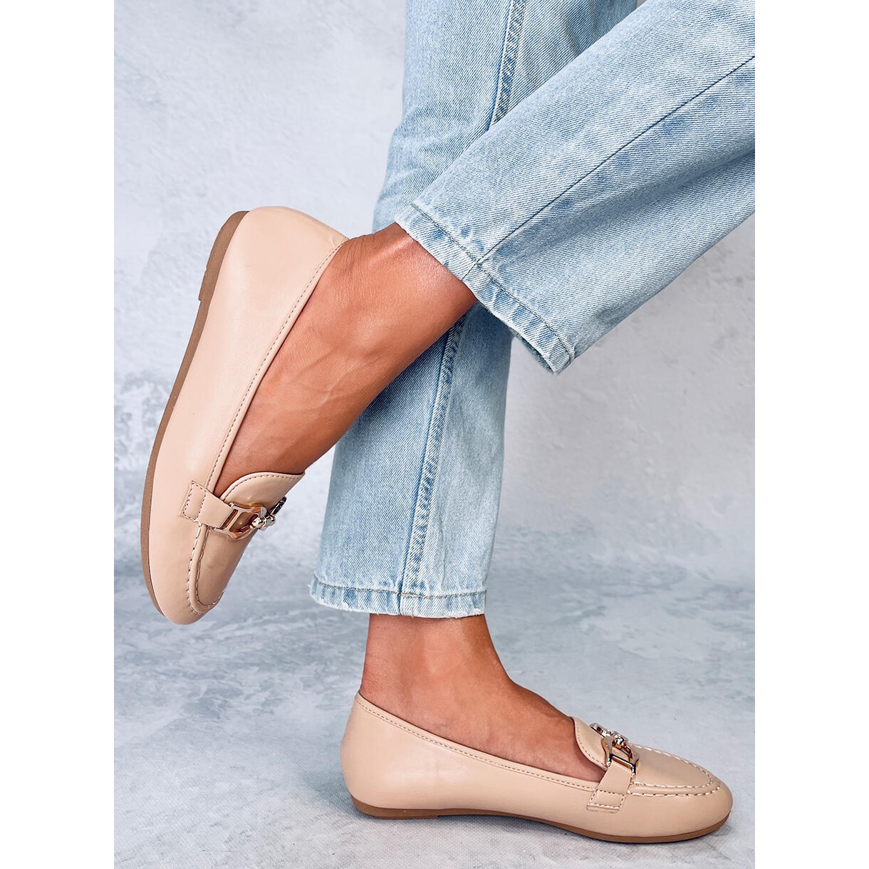 Amiya classic loafers in a universal shade of Beige combine a timeless cut with modern details. A smooth, grain surface and a subtle, golden application in the form of a chain give the shoes a stylish character that will work both in the office and in casual stylizations.