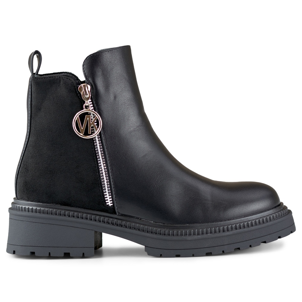 Elegant, black ankle boots with a decorative lock, combining a fashionable look with functionality. Made of ecological leather with elements of ecological suede, insulated with a fur insert - perfect for cooler days. The 2.5 cm stable platform provides convenient support while maintaining a female profile.