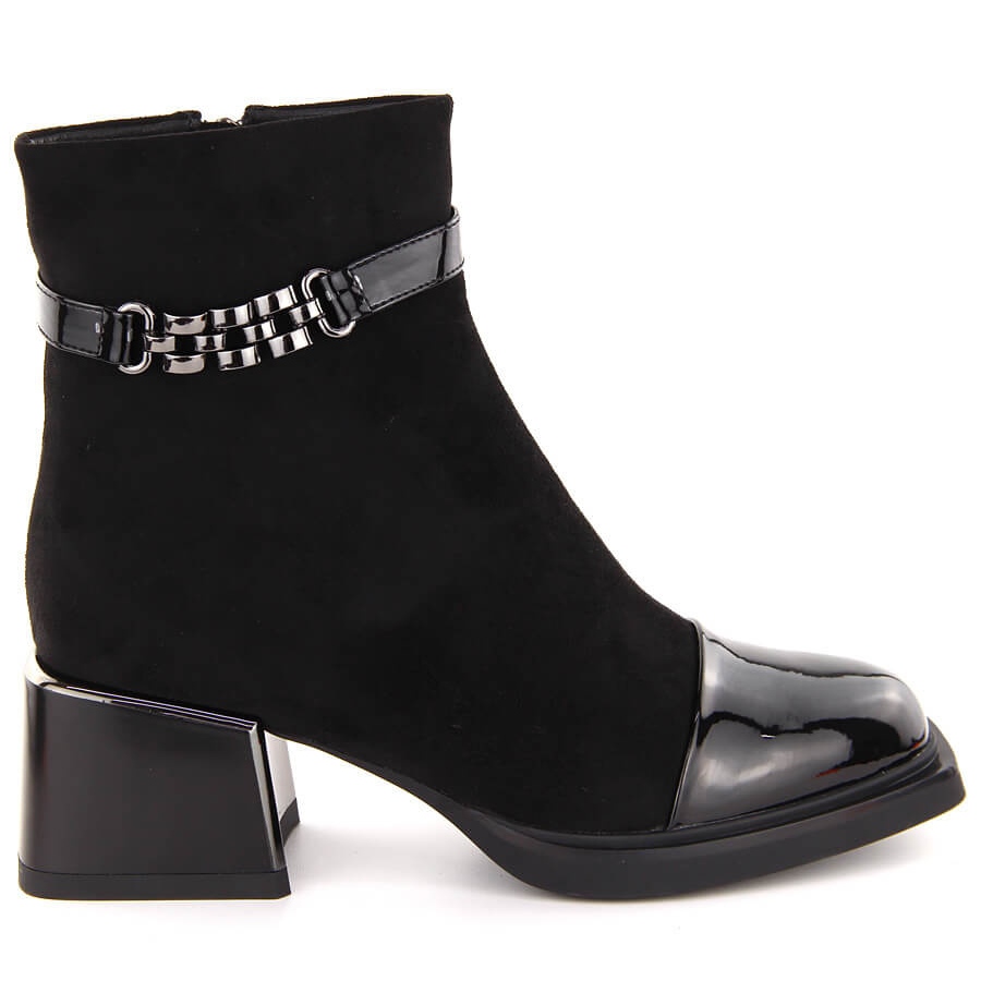 S.Barski Women's ankle boots with decorative heel black D&A S.Barski Premium Collection MR880-018