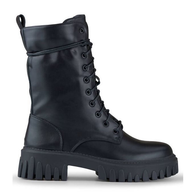 The 4.5 cm high heel adds the right height, without giving up convenience, which means that these boots are the perfect choice for autumn and winter days. Fastening in the form of lacing and a slider guarantees easy putting on and removing, and an additional chain that can be unfastened will add a little claw to your stylization.