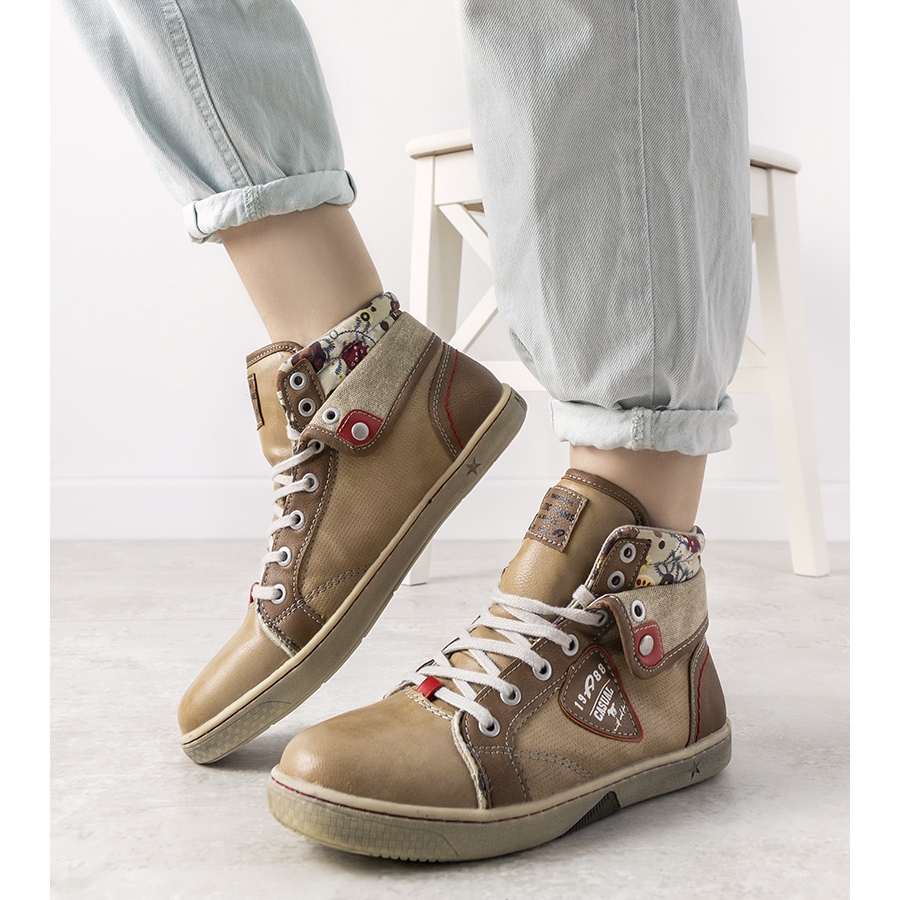 Beige Niente women's high-top sneakers are the perfect choice for women who value comfort and style in everyday styling. These fashionable sneakers, thanks to their unique upper decorated with a charming floral pattern, will certainly attract attention and add character to any outfit.