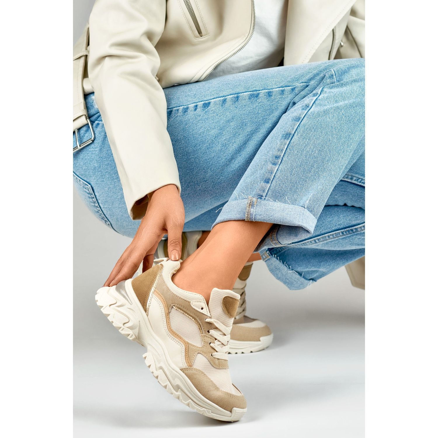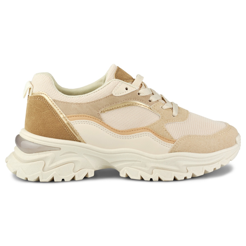 Details: Women's beige sneakers on a white sole