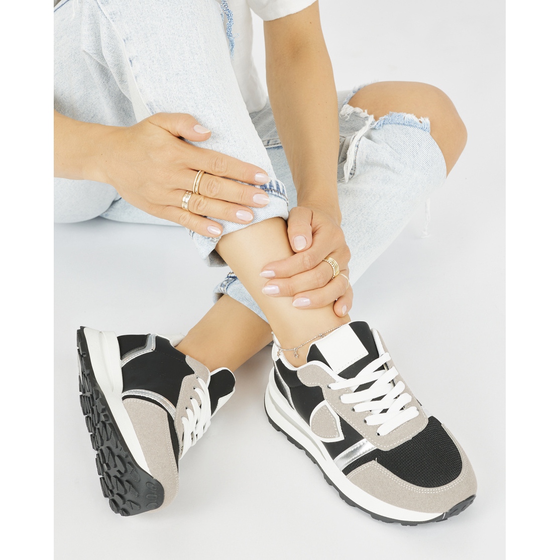 The black and beige color with the addition of silver accents perfectly fits into current trends, enabling easy matching to various styles-both sports and casual. The retreaded plastic sole provides good grip and comfort of wearing, which makes these shoes an ideal choice on a daily basis.