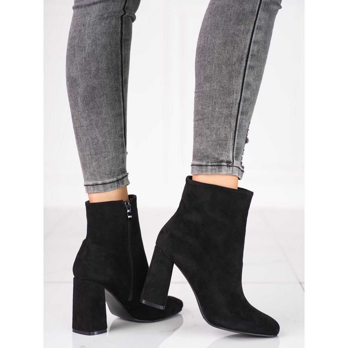 Black women's ankle boots with a heel Shelovet are an ideal choice for women who value elegance combined with everyday comfort. Made of ecological suede, they look stylish and modern, working perfectly both for everyday and special occasions.