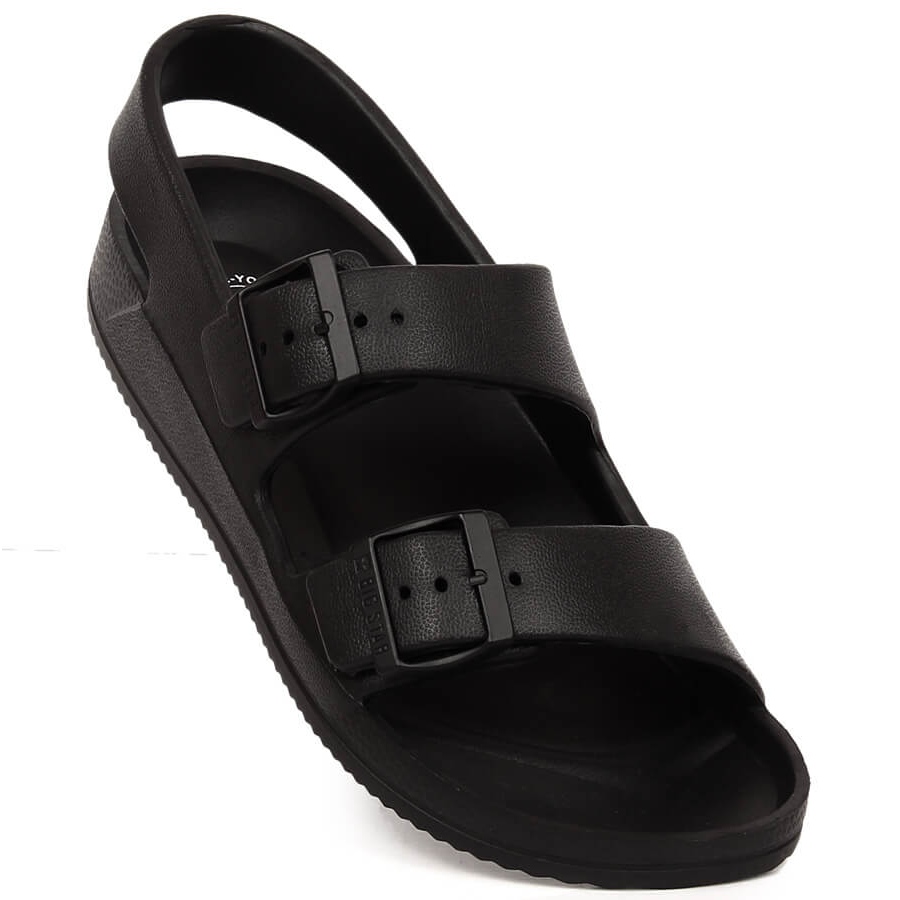 Made of high-quality synthetic material, the sandals perfectly fit the foot, providing adequate ventilation and comfort of wearing. The flat 1.5 cm heel makes them ideal for long walks or holiday adventures. The buckle fastening allows for easy putting on and taking off, and thanks to the lack of a toe, the sandals are airy and lightweight.