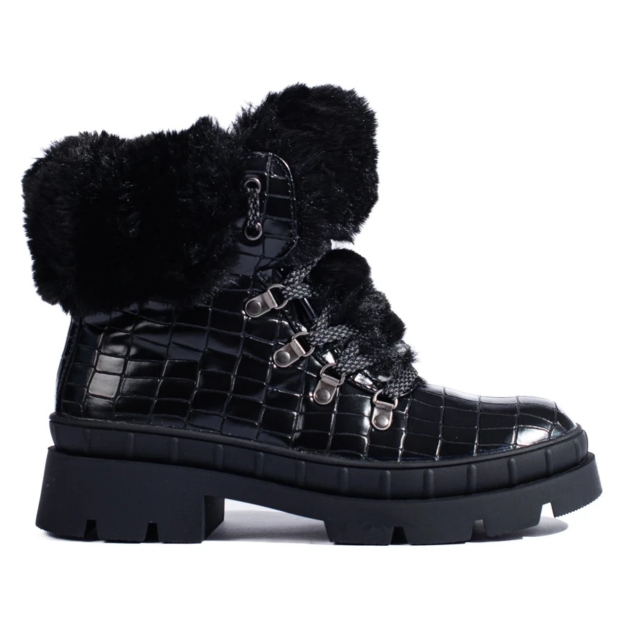Elegant women's boots, another brand combine a casual and sporty character with practical warming - perfect for cooler days. Made of high quality ecological leather in classic black, with soft fur and padded insole, they provide comfort, stability and fashionable ankle appearance.