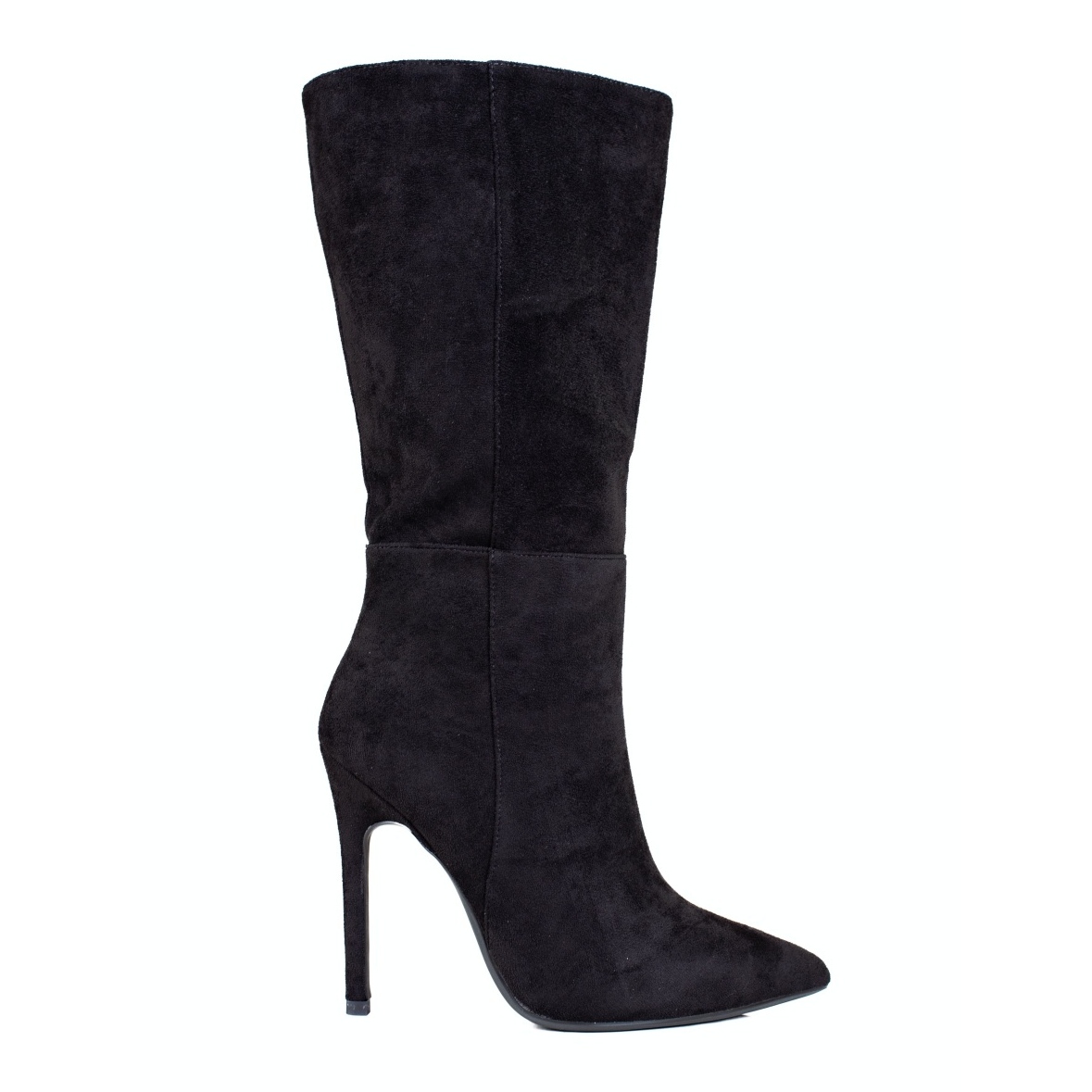 Elegant, timeless boots reaching to the knees, made of ecological suede in a classic black color. Perfect for colder days of the autumn/winter season - they combine a female cut on a pin with practical warming, thanks to which they will work both on a daily basis and during evening outings or celebrations.