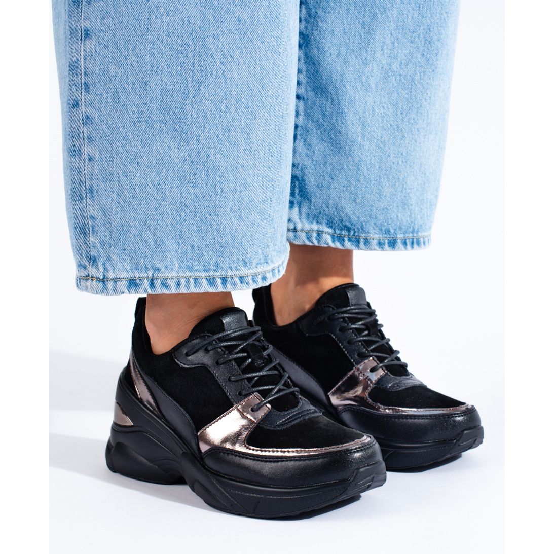 Modern women's shelovet sneakers combine a sports character with a fashionable finish. The black, minimalist form will work for everyday stylizations - from leggings and tracksuit to a casual dress.