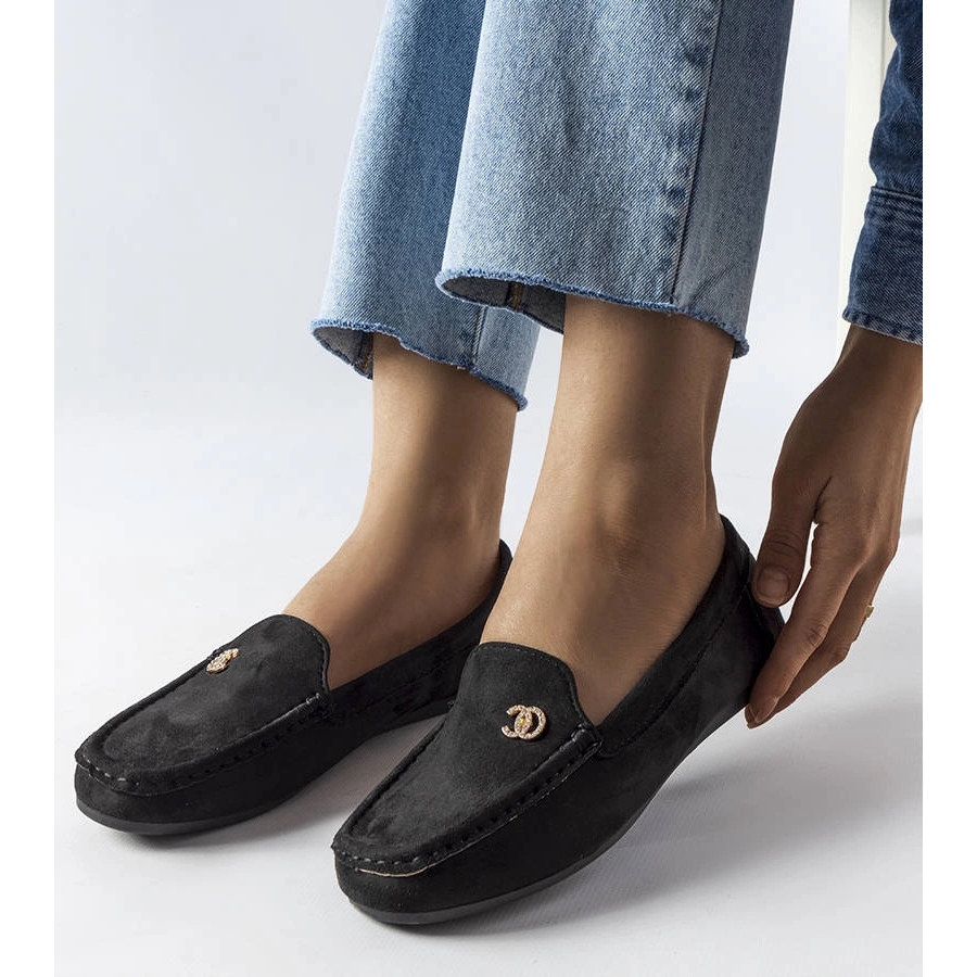 Black women's loafers Clardoux - a classic in a modern edition. Elegant and comfortable moccasins made of suede ecological leather, decorated with subtle zircons that give them style. Perfect for the summer - light, low and easy to put on.