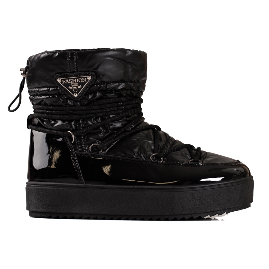 Black SHELOVET women's snow boots are the perfect choice for cold days. They provide not only excellent protection against the cold, but also a stylish look that fits perfectly into the casual character of any styling. Made of high-quality materials, their upper is made of shiny, patent eco-leather, which gives them an elegant finish.