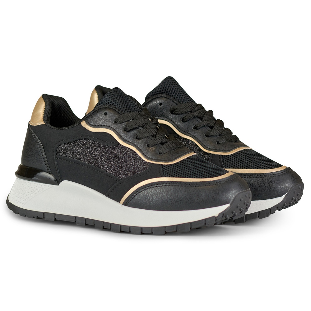 Details: Women's black shiny sneakers