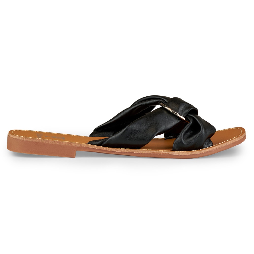 The black flip-flops feature a 1 cm flat heel, making them incredibly comfortable to wear all day long. Their open toe and slip-on fastening make them easy to put on and take off, making them a practical choice for everyday wear. The stylish, minimalist design makes them a great match for many summer styles – from casual to more elegant.