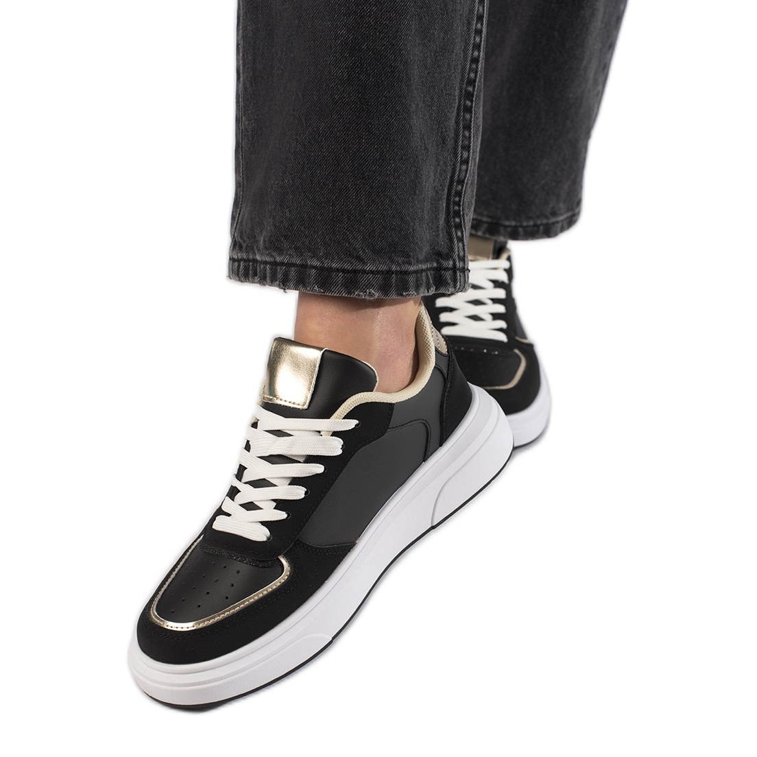 Women's black sneakers from a reputable brand are an ideal combination of style, comfort and functionality. Made of high quality ecological leather, this model is characterized not only by an elegant appearance, but also durability, which makes them a great choice for every occasion.