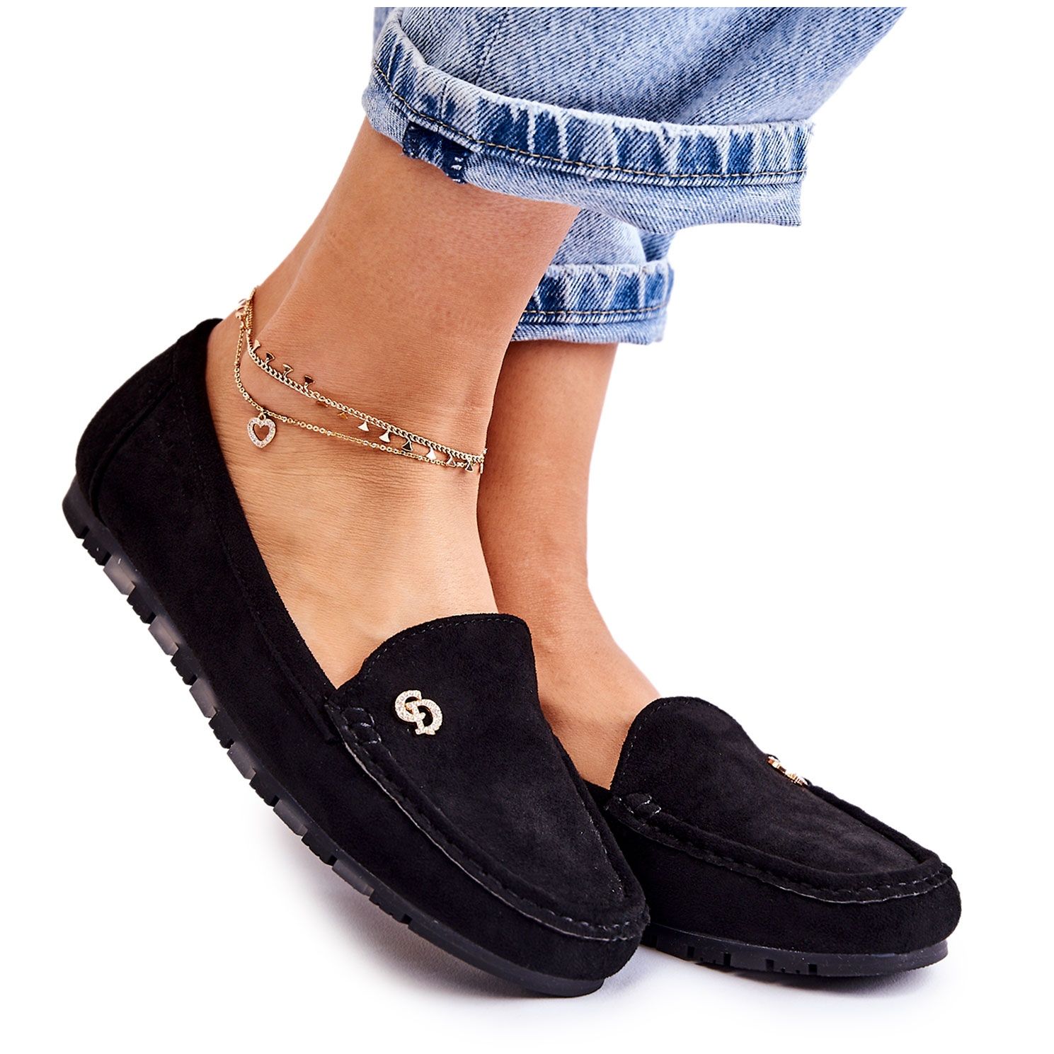 PS1 Women's Suede Moccasins Black Colena – Classic Elegant Comfort