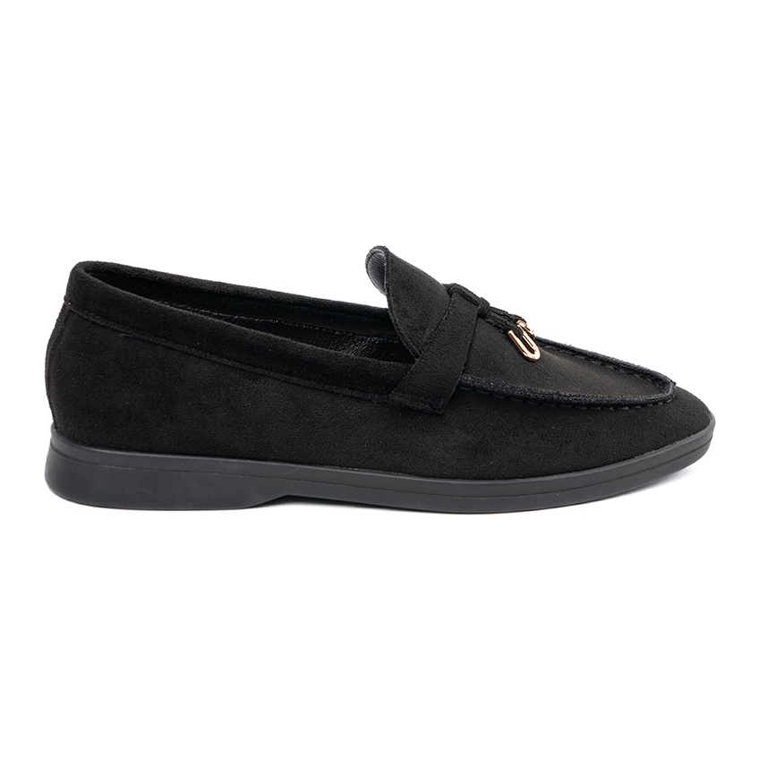 Details: Women's black suede moccasins