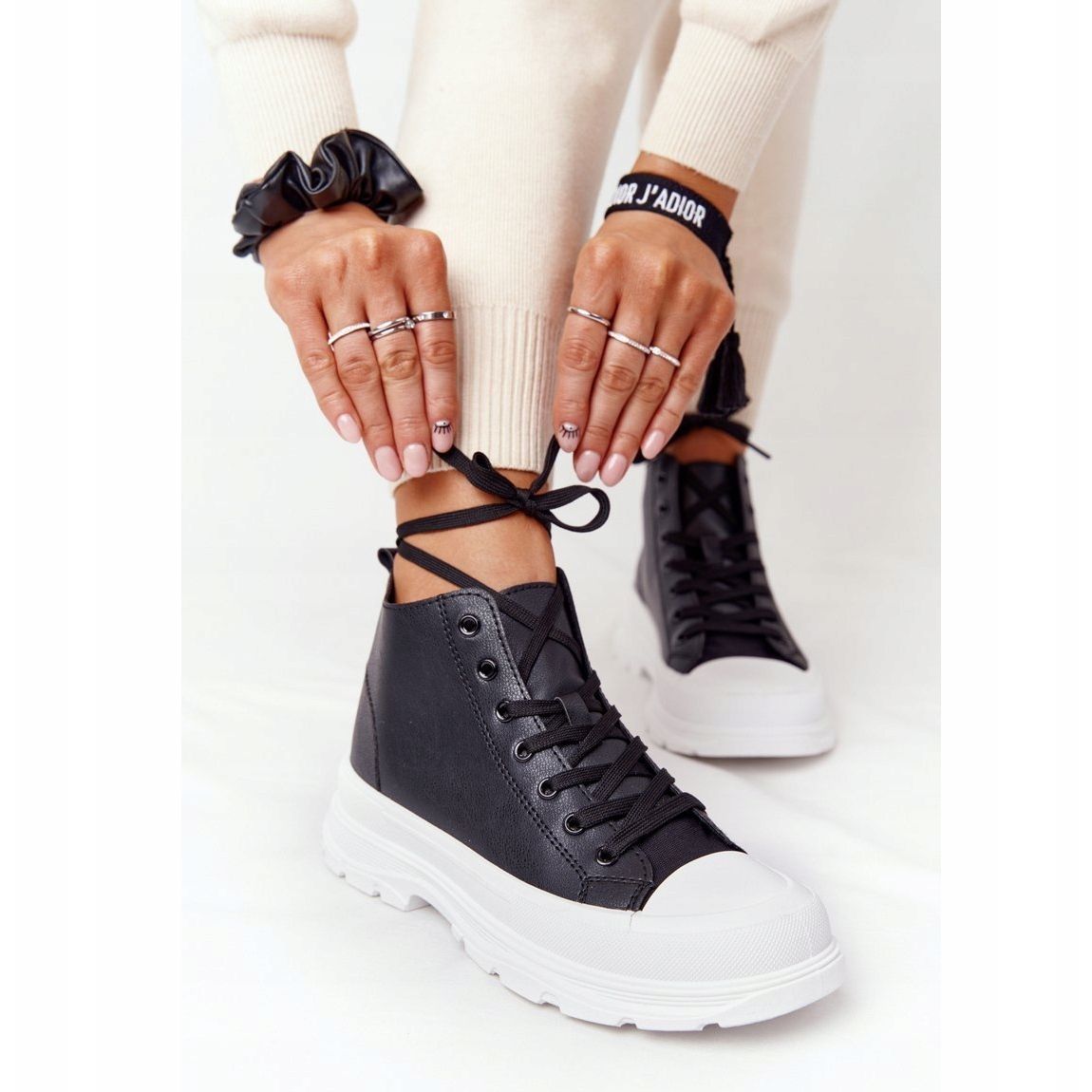 Trissy sneakers are characterized by a large sole with a height of 3.5 cm, which ensures comfort of wearing and adds a touch of elegance to each step. The round toe and the height of the upper of 9.5 cm make the shoes adapt well to the shape of the foot, and the soft material insole guarantees full comfort all day long.
