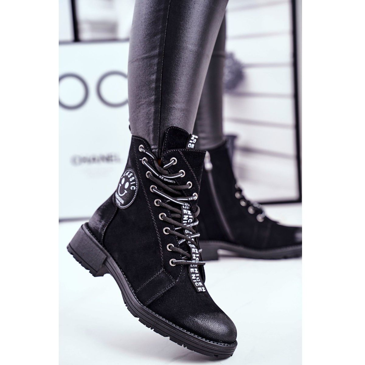 The boots have a round toe and have been designed with attention to detail. Decorated with a black stripe with the inscriptions "NICE" and unusual lacing, they will certainly attract attention and distinguish any styling. The flat heel with a height of 4 cm ensures comfort of wearing all day long, and the height of the upper reaching 14 cm adds character and attractiveness.