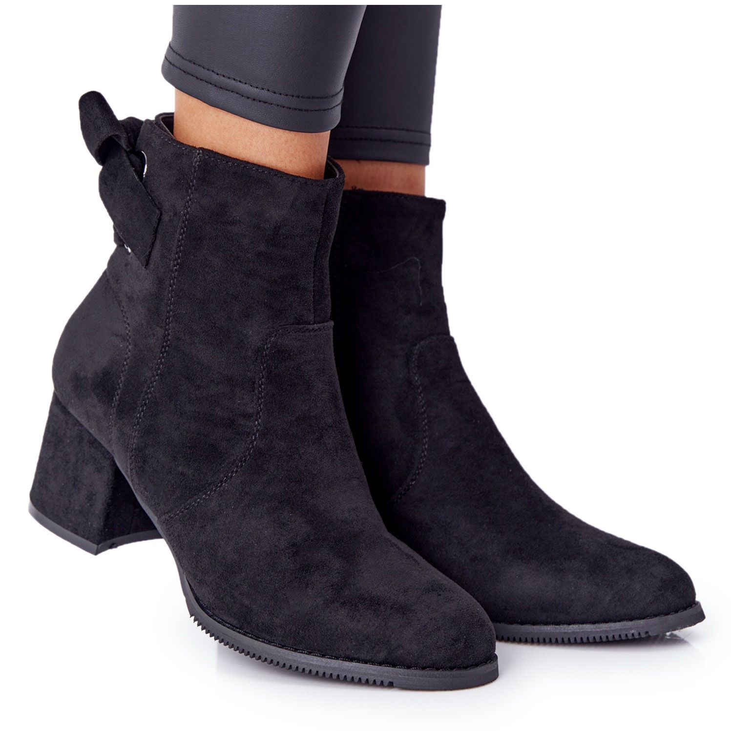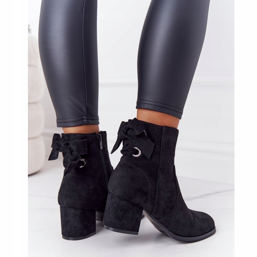 The black color of the boots perfectly fits into the latest trends, and the round toe and decorative bow add a unique character to them. The 6.5 cm high column heel guarantees stability and comfort of wearing, ideal for long walks or city outings. With a zip fastening, this model is extremely practical, and the width of the upper of 25 cm and the width of G make them fit the foot perfectly.