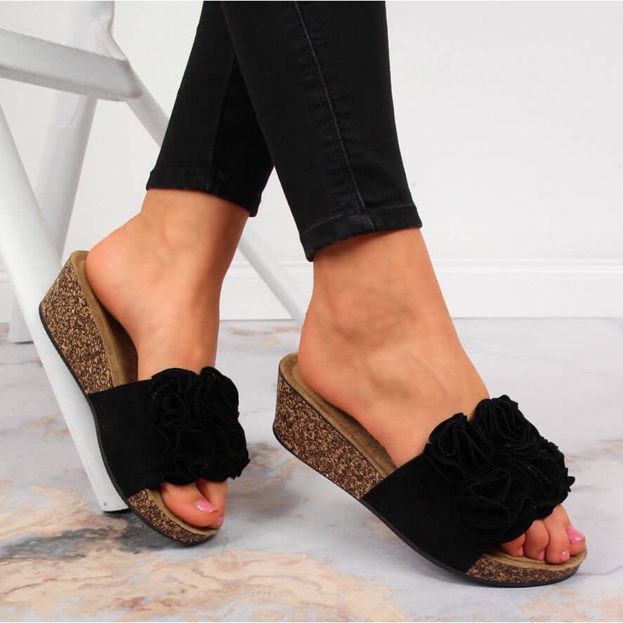 Discover summer elegance with women's wedge flip-flops from the eVento brand. These extremely fashionable flip-flops in classic black are the perfect choice for hot days, combining comfort and style. Made of high-quality suede eco-leather, they guarantee not only excellent durability, but also the pleasure of wearing.