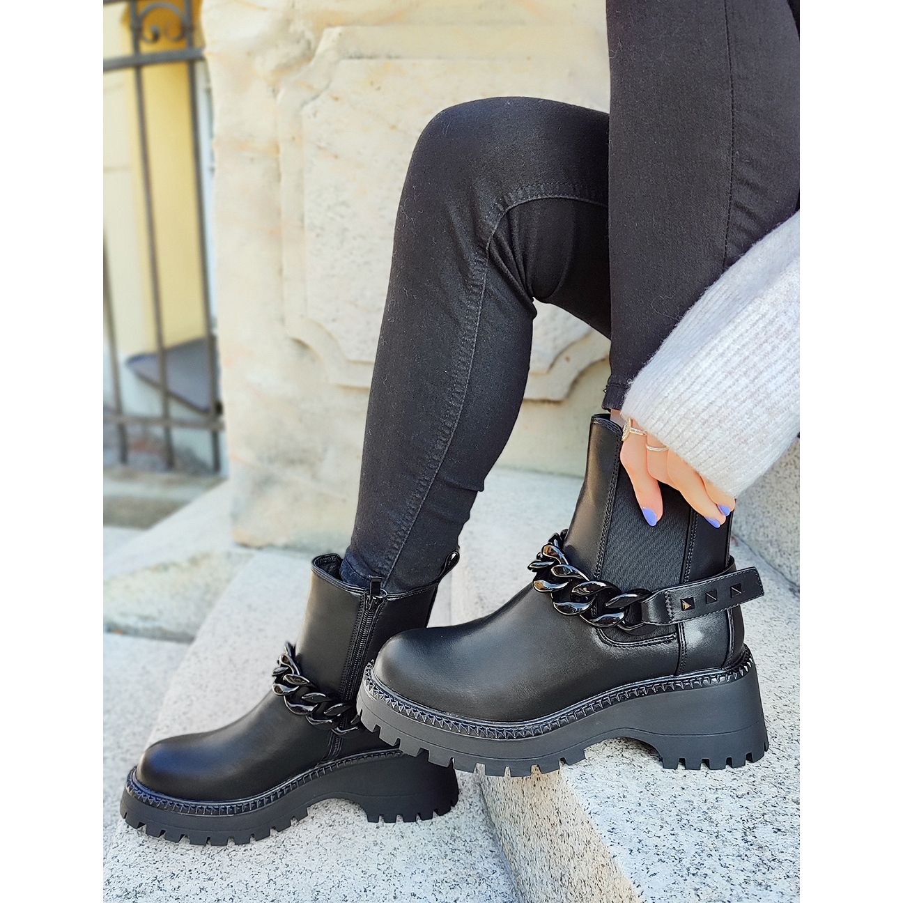 Classic, and at the same time fashionable Workers of Jodhpur boots in universal black. Made of ecological leather, with a practical castle and a decorative, detachable chain - combine comfort with a rock character. Warming and a higher platform sole (6.5 cm) make the model work great on cooler days.