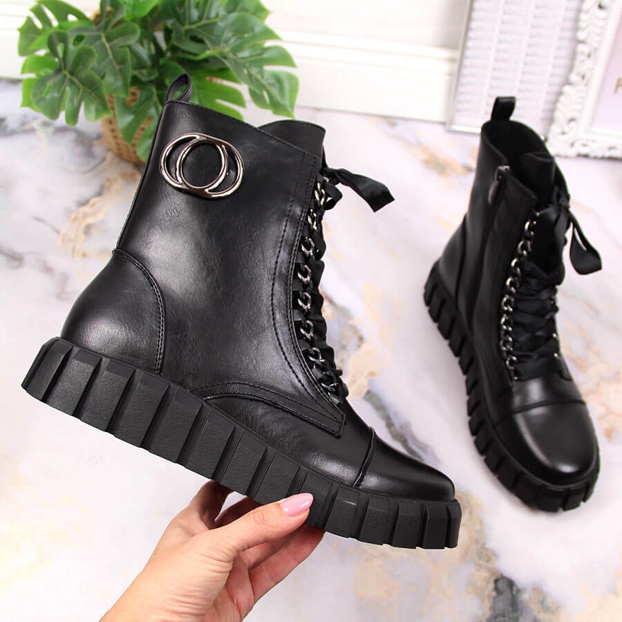 This model is characterized by a classic, round toe and a practical zip fastening and lace-up laces, which make it easy to put on and adjust to the foot. Their universal black color makes them a great match for a variety of styles - from casual jeans to elegant dresses.