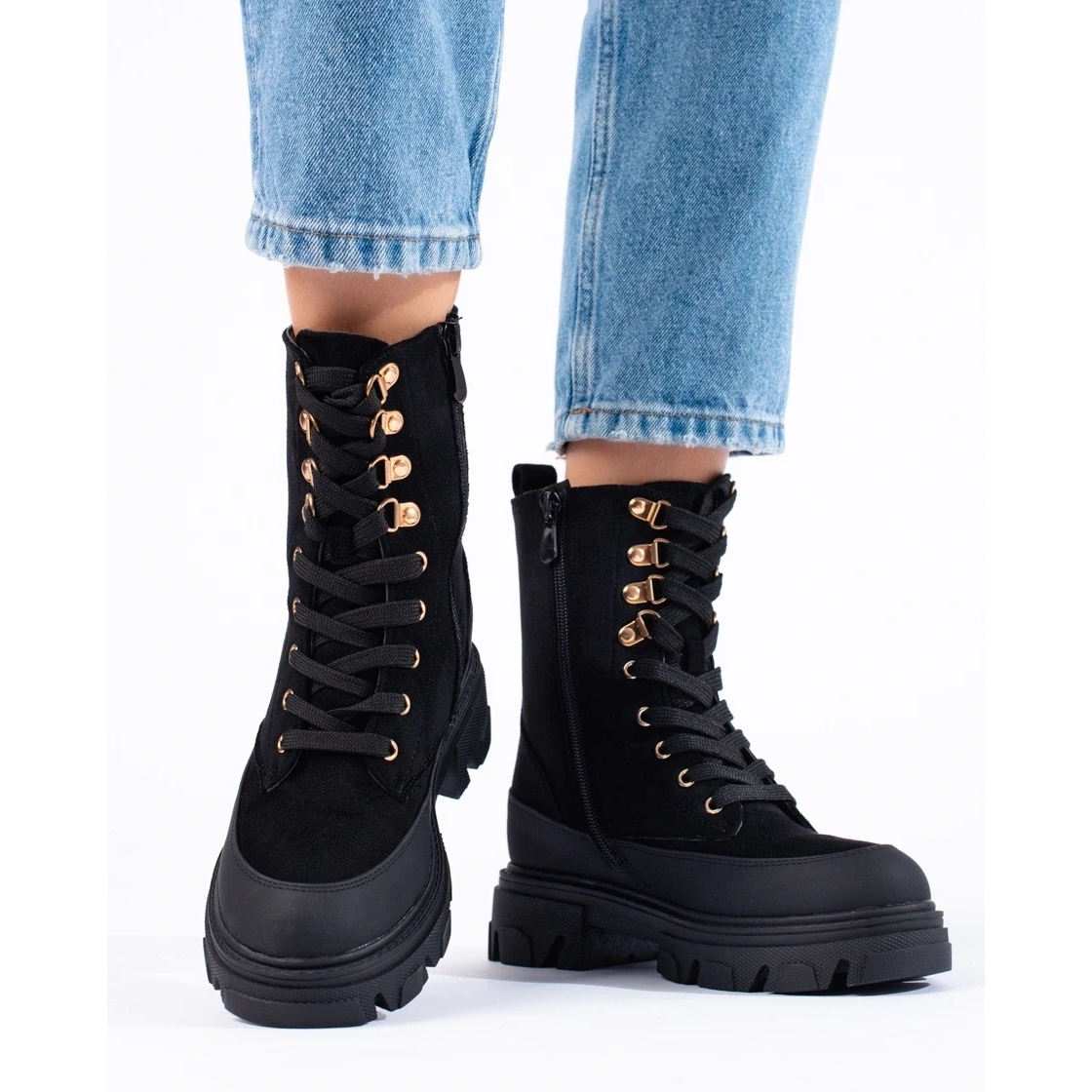 Modern W. Potocki workers combine a rock character with daily comfort. Made of ecological suede in classic black, they perfectly match the autumn -winter stylizations - they are insulated and equipped with a soft footwear blanket, thanks to which they provide heat and comfort even at low temperatures.