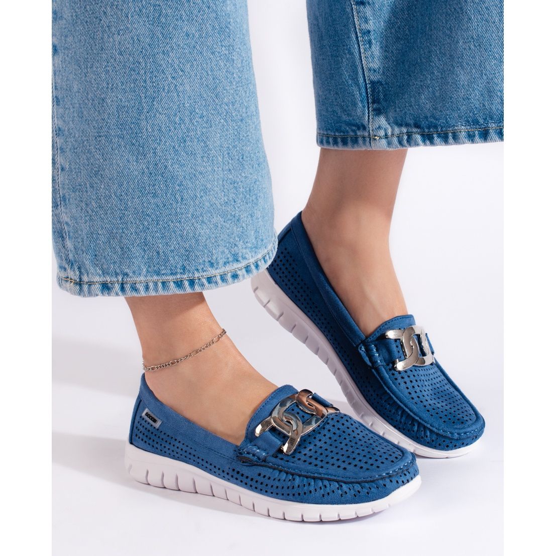 Made of ecological suede leather, these shoes guarantee durability and original appearance. The openwork cut not only adds lightness, but also provides ventilation, which is extremely important on warmer days. In addition, chain accents introduce a note of modernity to the classic cut, making them the perfect choice for women who value a stylish, casual look.