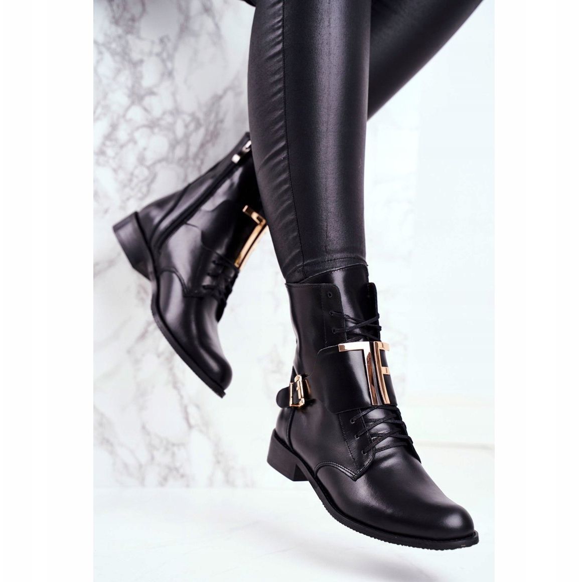 Available in classic black with gold elements, Nicole ankle boots are a great base for creating both everyday and more elegant outfits. Their universal character makes them a perfect addition to any wardrobe.