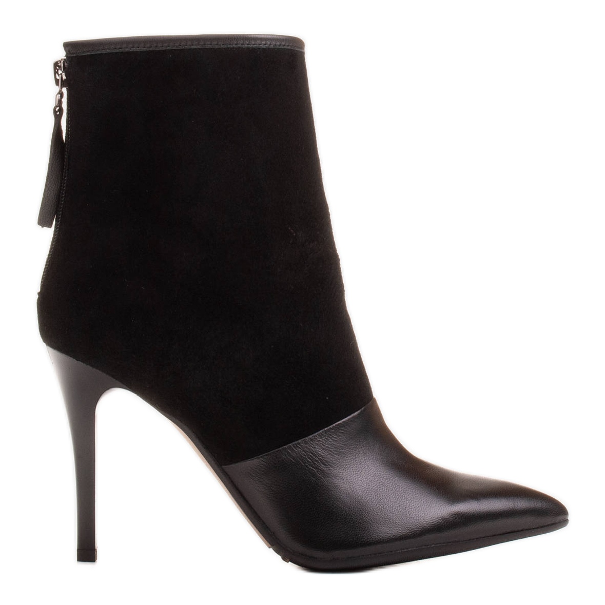 We present a model made of the best materials: a combination of natural grain leather and delicate suede is a guarantee of quality and a unique appearance. Black - an undisputed classic in world fashion - is used here in the most universal and elegant version, which makes these boots perfectly match many wardrobe elements - from business suits to evening dresses and more casual sets.