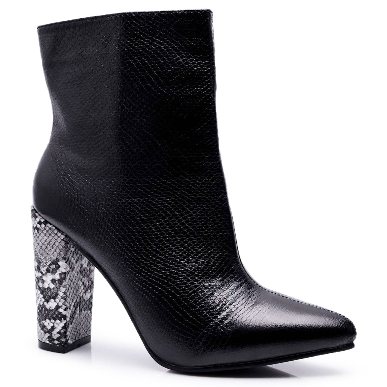 Discover exceptional style and comfort with the FJ1 women's ankle boots with a block heel, which impress not only with their design but also with their functionality. These elegant black ankle boots feature a fashionable snake motif that adds a unique character to them. Made of high-quality ecological leather, both the outer part and the insole provide comfort for all-day wear.