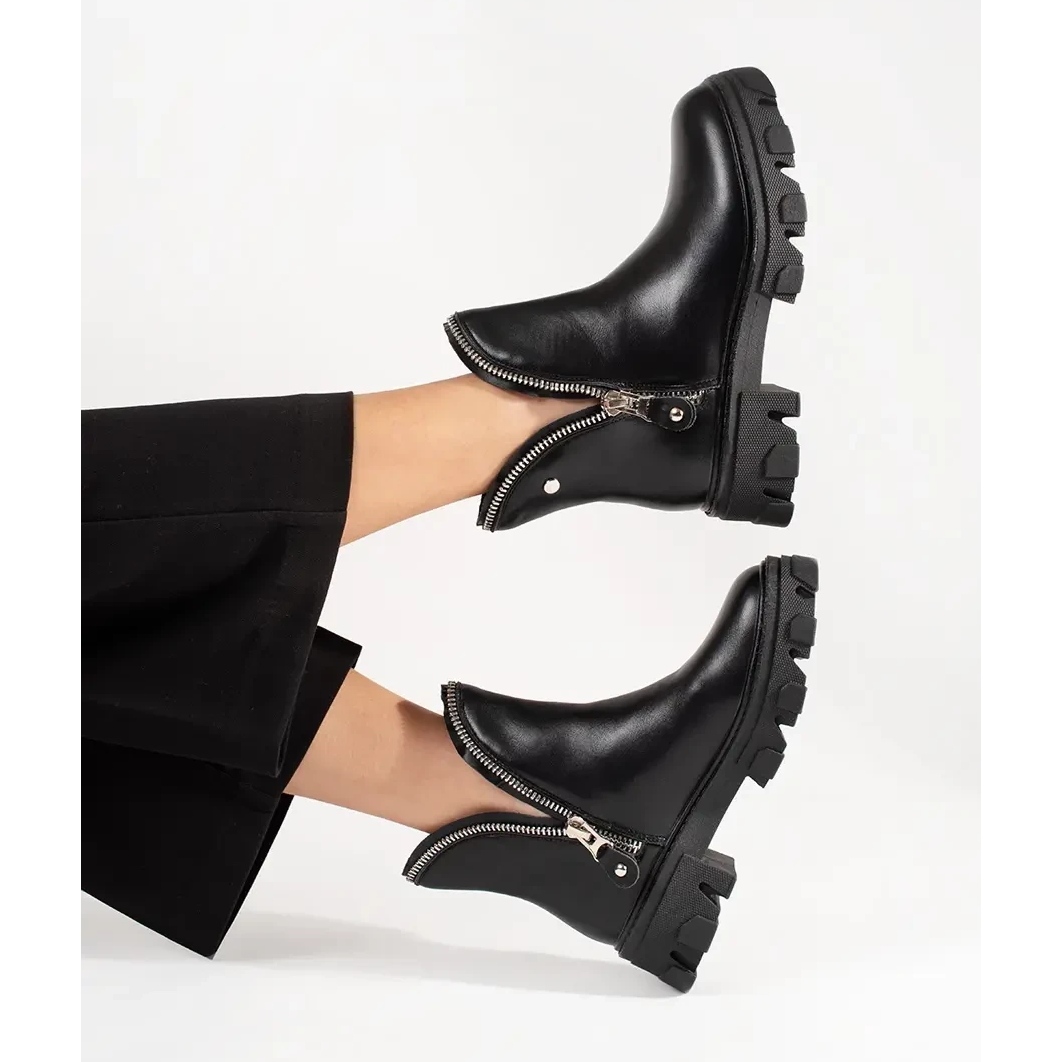 Discover elegance and comfort enclosed in one model - women's ankle boots on a thick Shelovet platform in black. These stylish ankle boots perfectly fit into a casual style, making them a great choice for everyday outings in the autumn/winter season.