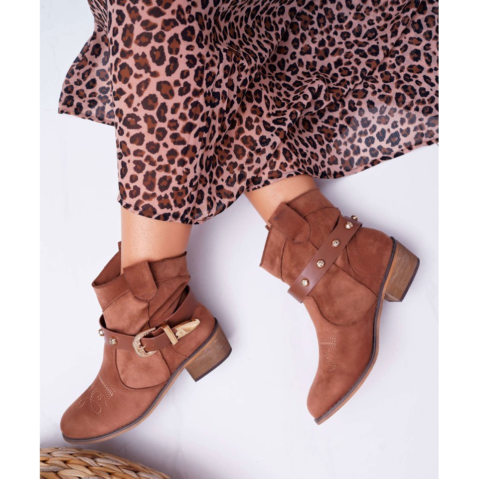 Discover a unique style with the FRBS women's ankle boots in a shade of camel, which combine classic cowboy accents with modern solutions. These extremely stylish ankle boots with a flat heel are the perfect choice for autumn and summer days, perfectly matching a variety of styles.