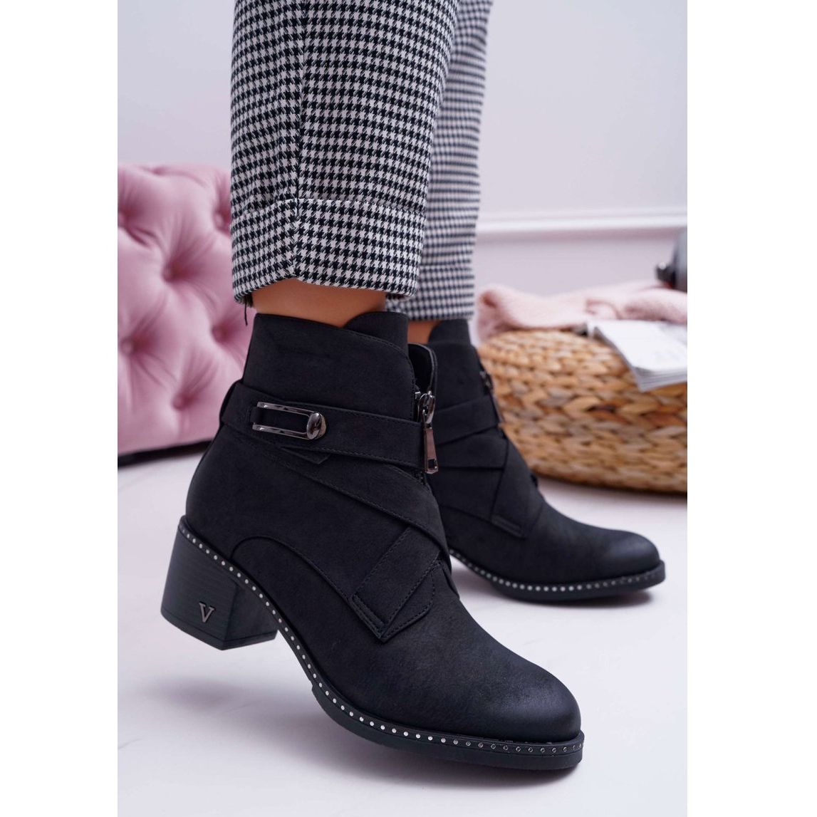Women's Ankle Boots Vinceza are the perfect choice for every woman who wants to combine elegance with comfort. Made of high-quality ecological suede leather, these black ankle boots impress with their simple, yet unique style. The classic round toe and the clasp on the upper add chic and make them fit perfectly into various styles.