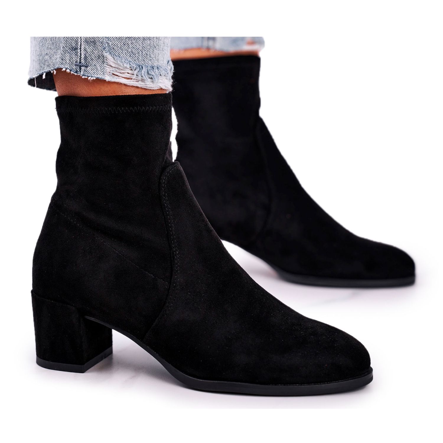 Women's High Heel Ankle Boots Sergio Leone Black BT151 are the perfect choice for autumn days, combining style and comfort. These elegant shoes are characterized by a delicate 5 cm high column, which subtly lifts the silhouette, adding to its slimness. Made of high-quality ecological leather in a shade of black, the suede surface gives them a luxurious look.