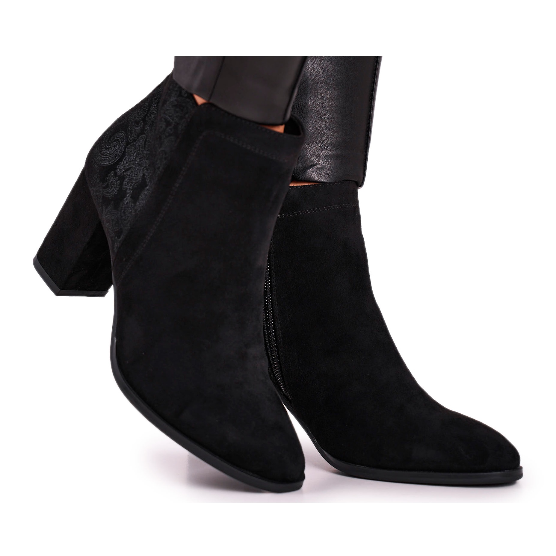 Discover the elegance and comfort offered by Sergio Leone women's ankle boots in black (BT508 model). These stylish ankle boots are a great choice for cold days, being an inseparable element of any autumn-winter styling. The classic design with a beautiful decoration on the back of the upper gives them a unique character, harmonizing with a variety of outfits.