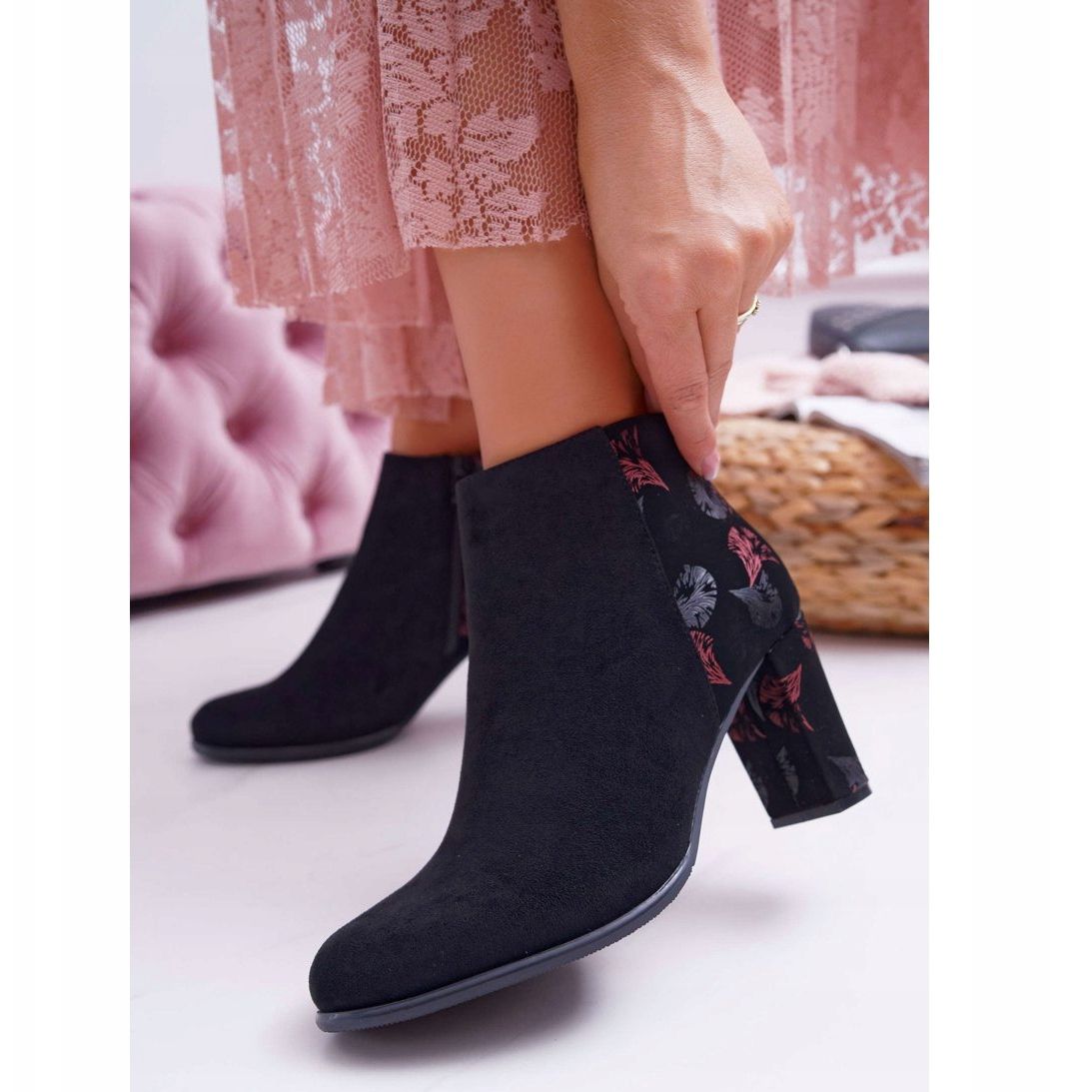 Discover a unique style this winter with Sergio Leone women's ankle boots with a whimsical motif of pink folk flowers. These classic ankle boots are a perfect combination of elegance and comfort, which perfectly fits into the latest fashion trends. Made of high-quality ecological suede leather, they are a perfect complement to any autumn-winter styling.