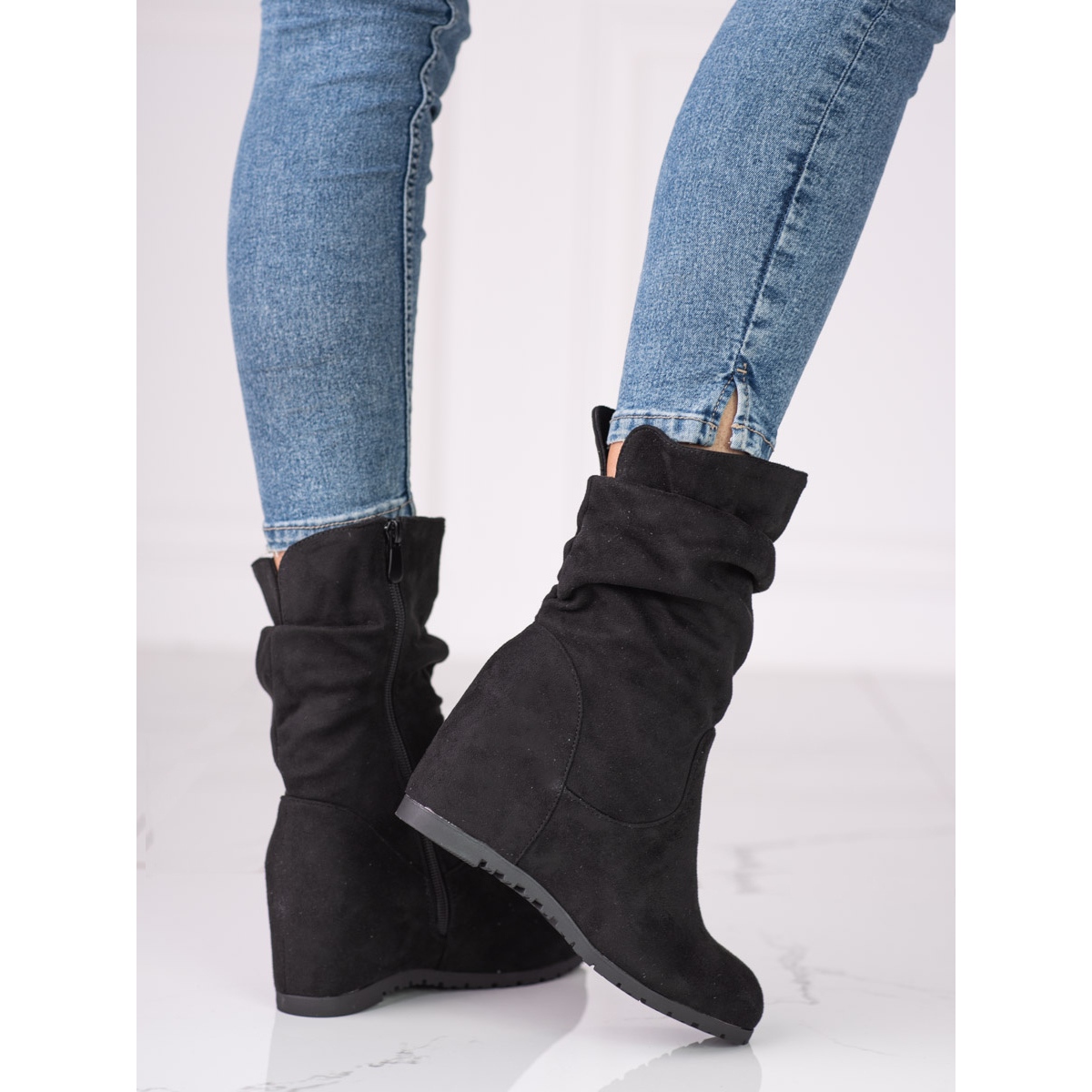 SHELOVET Women's boots on the Shelovet wedge with a ruffled upper black