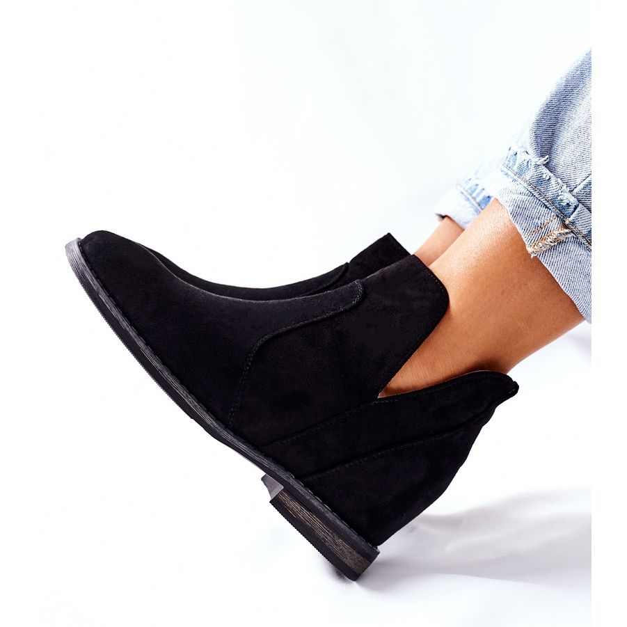 We present unique women's S.Barski Joiva wedge ankle boots in classic black, which will perfectly complement any styling. Made of eco-suede, they combine elegance with comfort, and their soft eco-leather insole ensures comfort throughout the day.