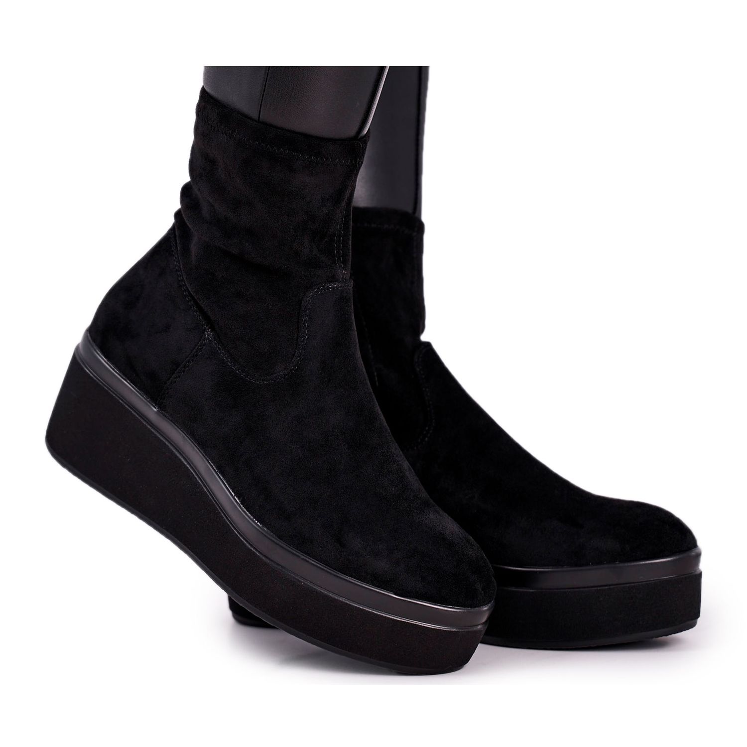 The inside of the boots is insulated with a pleasant to the touch fur, which makes them ideal even on colder days. A delicate 6.5 cm wedge and a 3.5 cm platform guarantee comfort while wearing, without burdening the feet, which makes them an ideal choice for everyday wear.