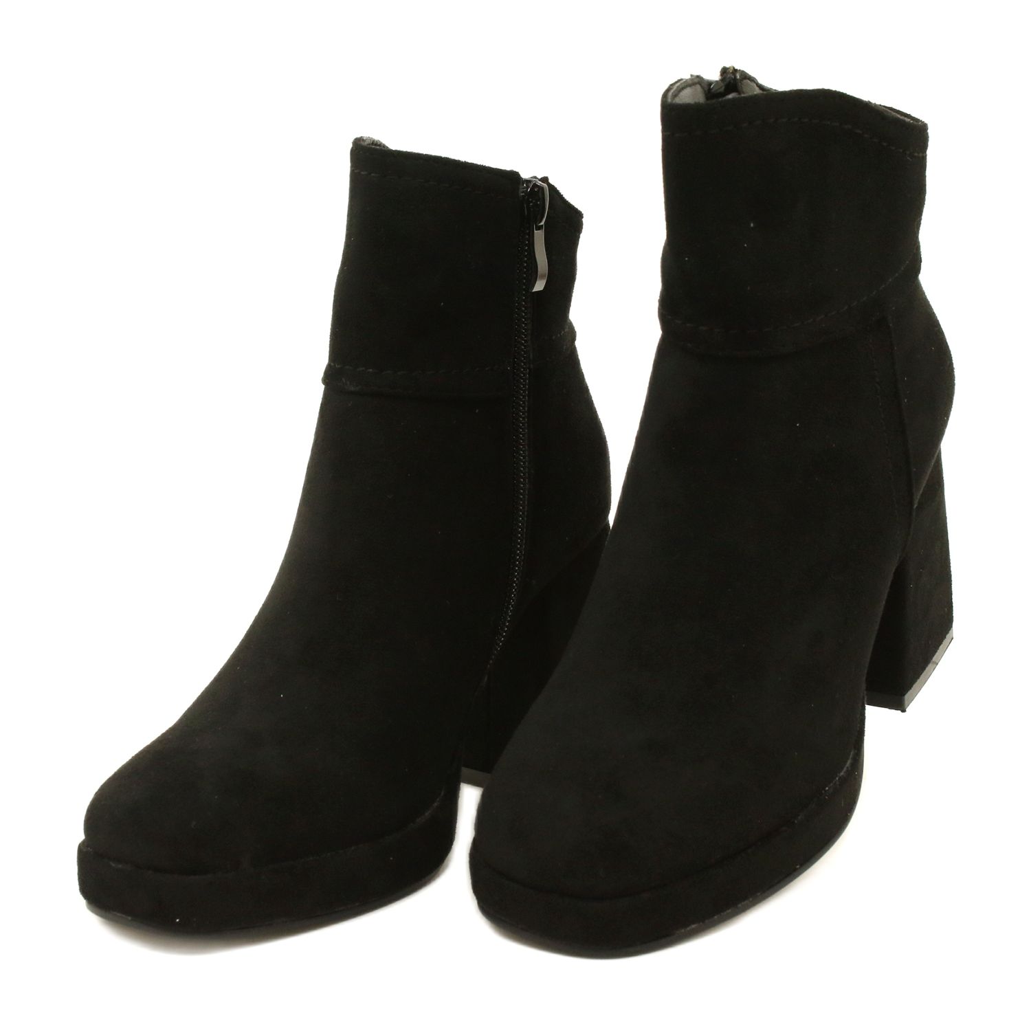 Fashionable Suede Ankle Boots On A Heel, Insulated With Fur, Black, from M.Daszyński, is the perfect choice for women who want to combine style with comfort in difficult winter conditions. These elegant boots, in a classic black color, match perfectly with various outfits, making them a versatile element of the wardrobe.