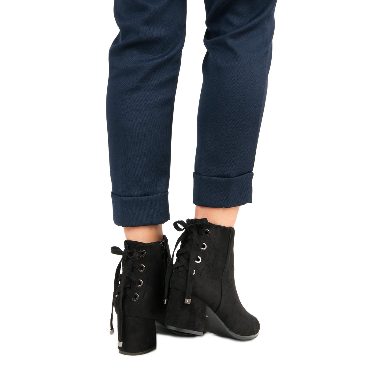 Discover the perfect footwear for every occasion – black women's ankle boots with ties! These elegant shoes combine fashionable design with the highest wearing comfort. Made of high-quality ecological suede, they perfectly fit into current trends, and their universal, black color makes them suitable for many styles – from casual to more elegant.
