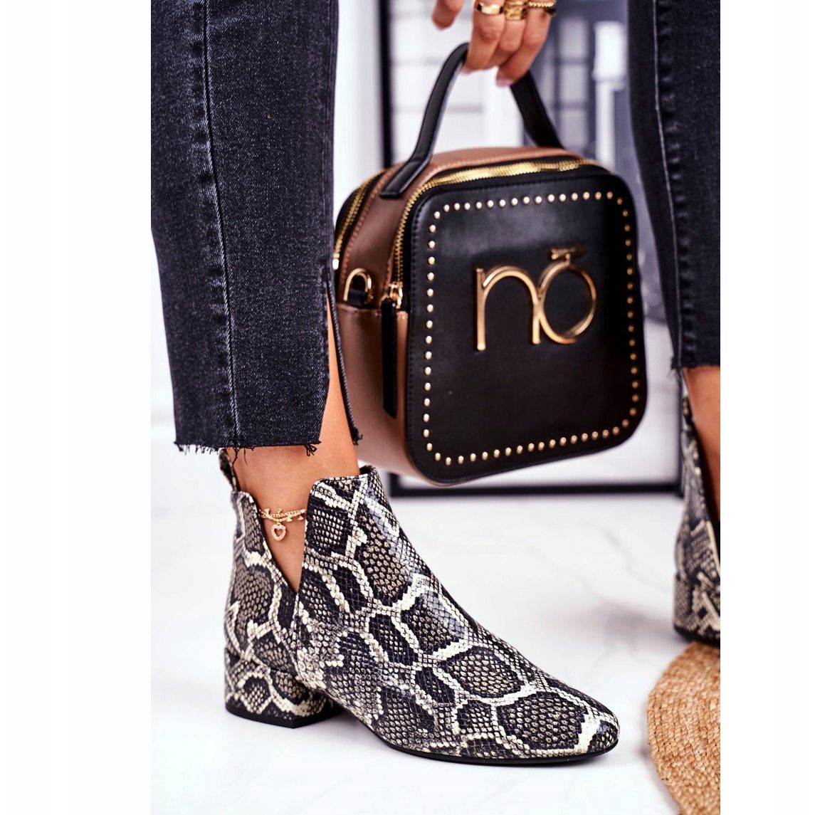 PV3 Women's Ankle Boots with Cutouts are a real treat for fashion lovers! These elegant and at the same time predatory footwear from the latest Visconi collection will certainly attract everyone's attention. Made of natural leather in a beautiful snake pattern, they will perfectly fit into both casual and more elegant styles.