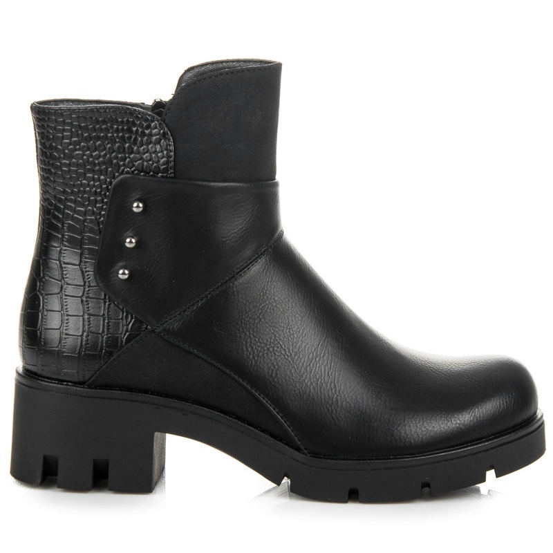 Their magnificent, thick 5 cm heel, designed with a deep tread, guarantees stability at every step, regardless of the surface. Additionally, the spectacular heel imitating crocodile skin adds a unique character to them, attracting the attention of the surroundings. The boots have a round toe and a stiffened heel, which provides additional comfort of wearing.