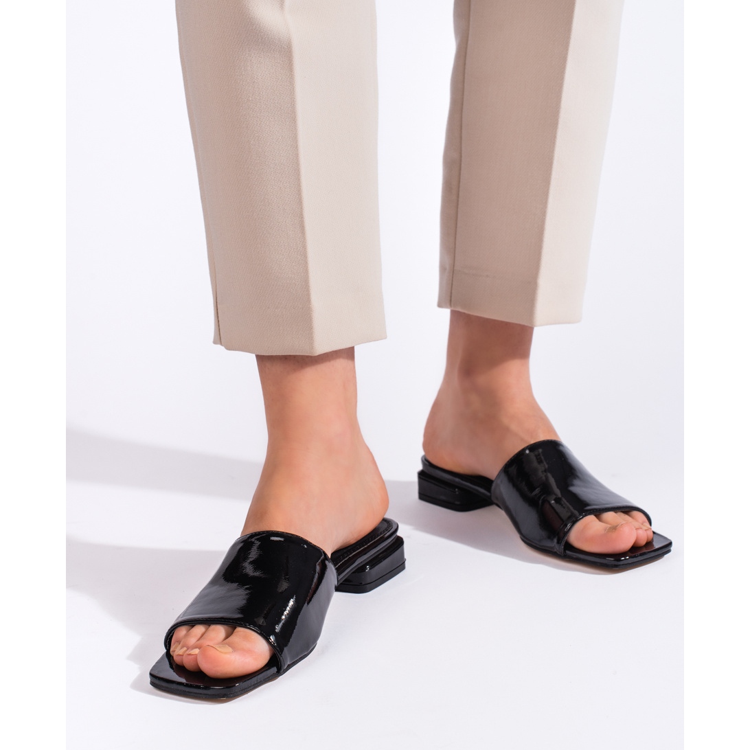 Thanks to the open fastening and insertion, putting on them is extremely simple, and the comfort of use increases the soft insert of ecological leather. The 3 cm high heel provides additional support, while adding class to each step, and a smooth plastic sole ensures stability.
