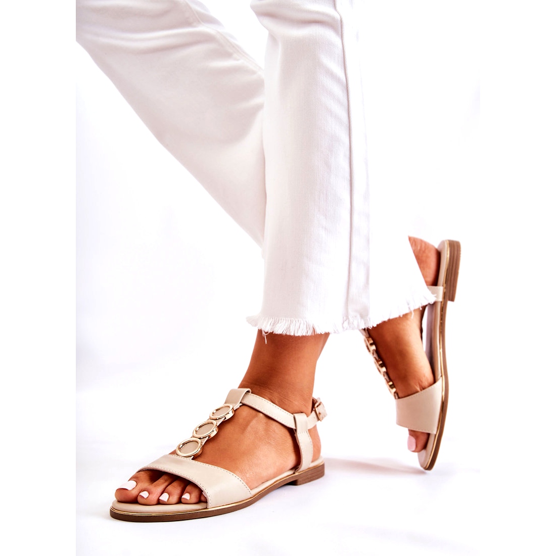 Evento Evento Women's Classic Sandals With a Decorative Strap, Beige
